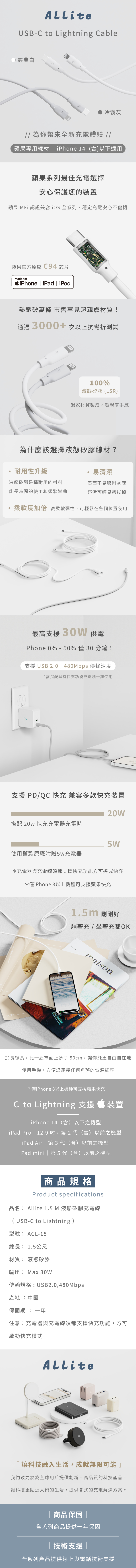 · C to L 最高支援 30W 功率輸出 ( iPhone 14以下適用 )