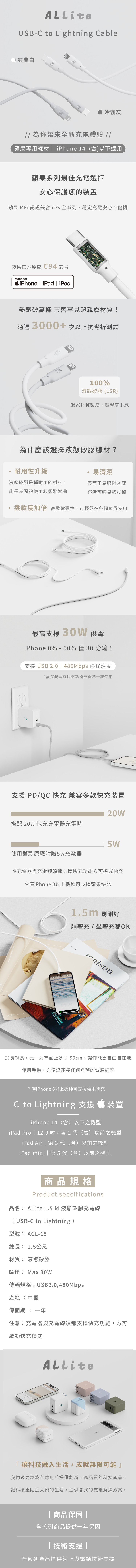 · C to L 最高支援 30W 功率輸出 ( iPhone 14以下適用 )