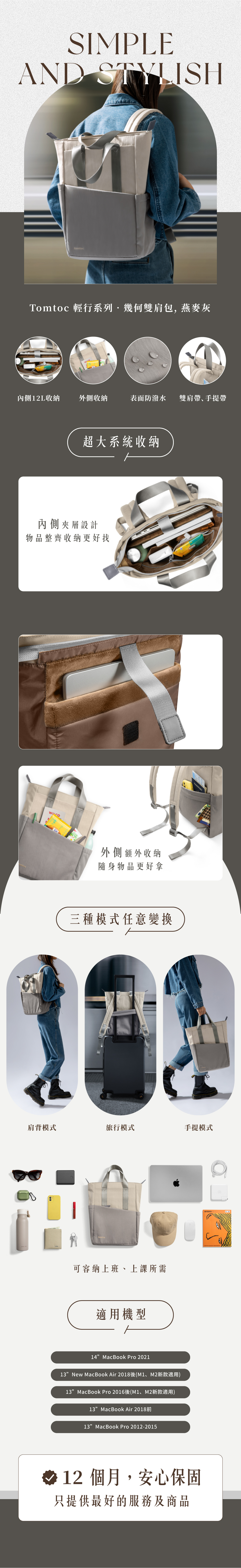 ▸12L大容量多夾層收納