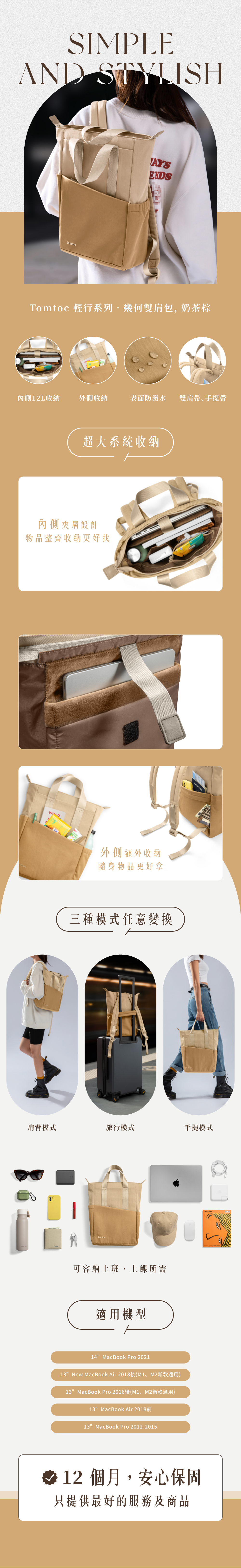 ▸12L大容量多夾層收納